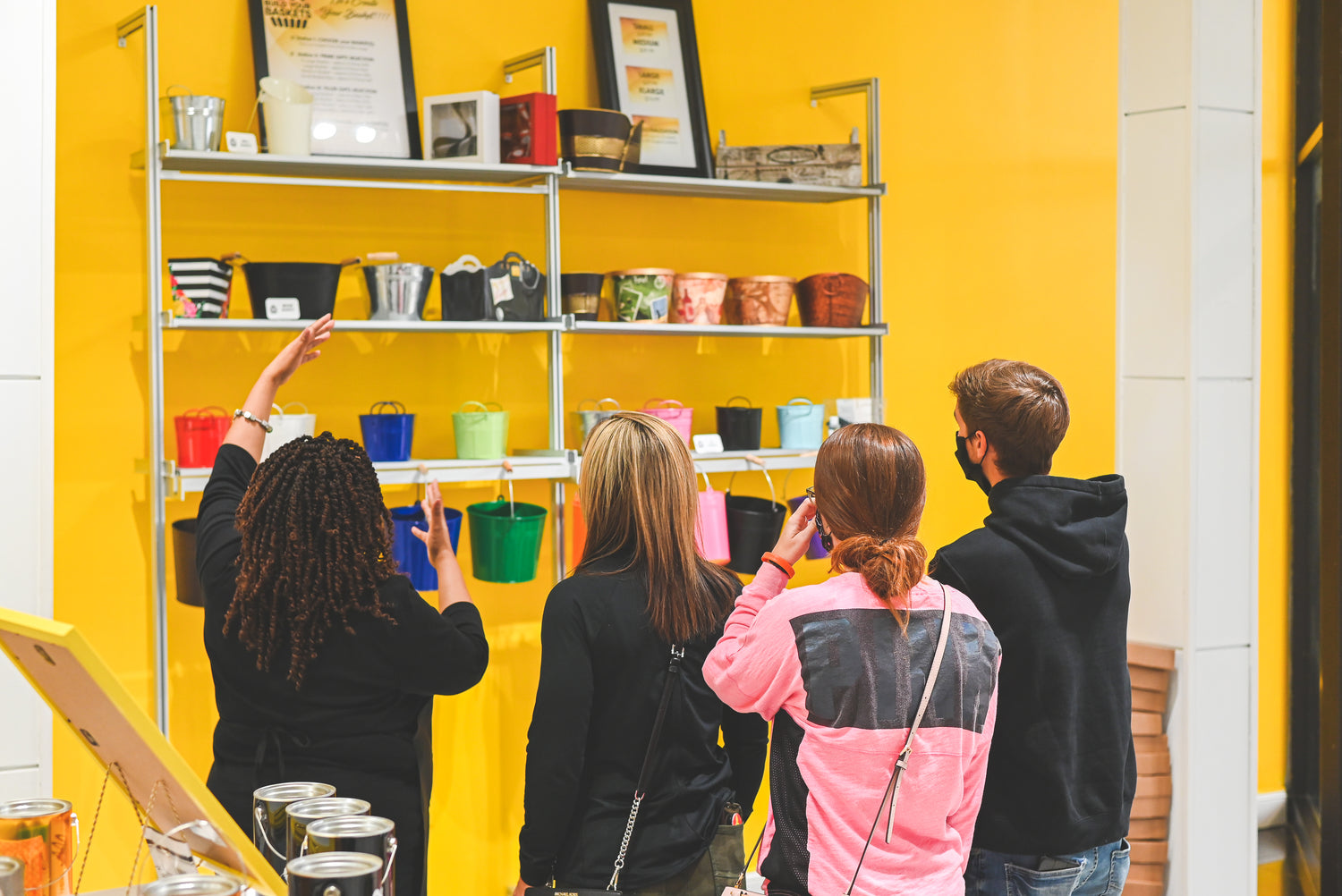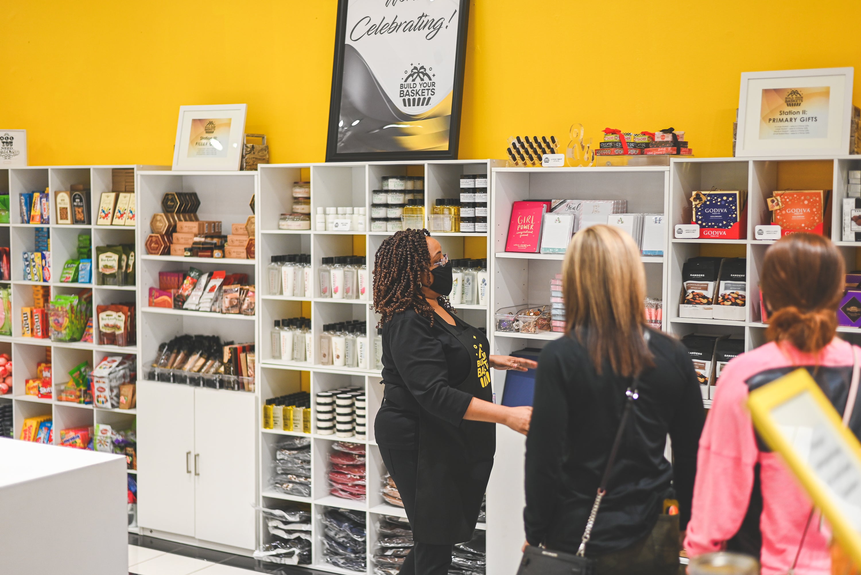 Customers are greeted by Basket Artists when they enter the store, who help walk them through the various stations to create their own unique gift baskets.