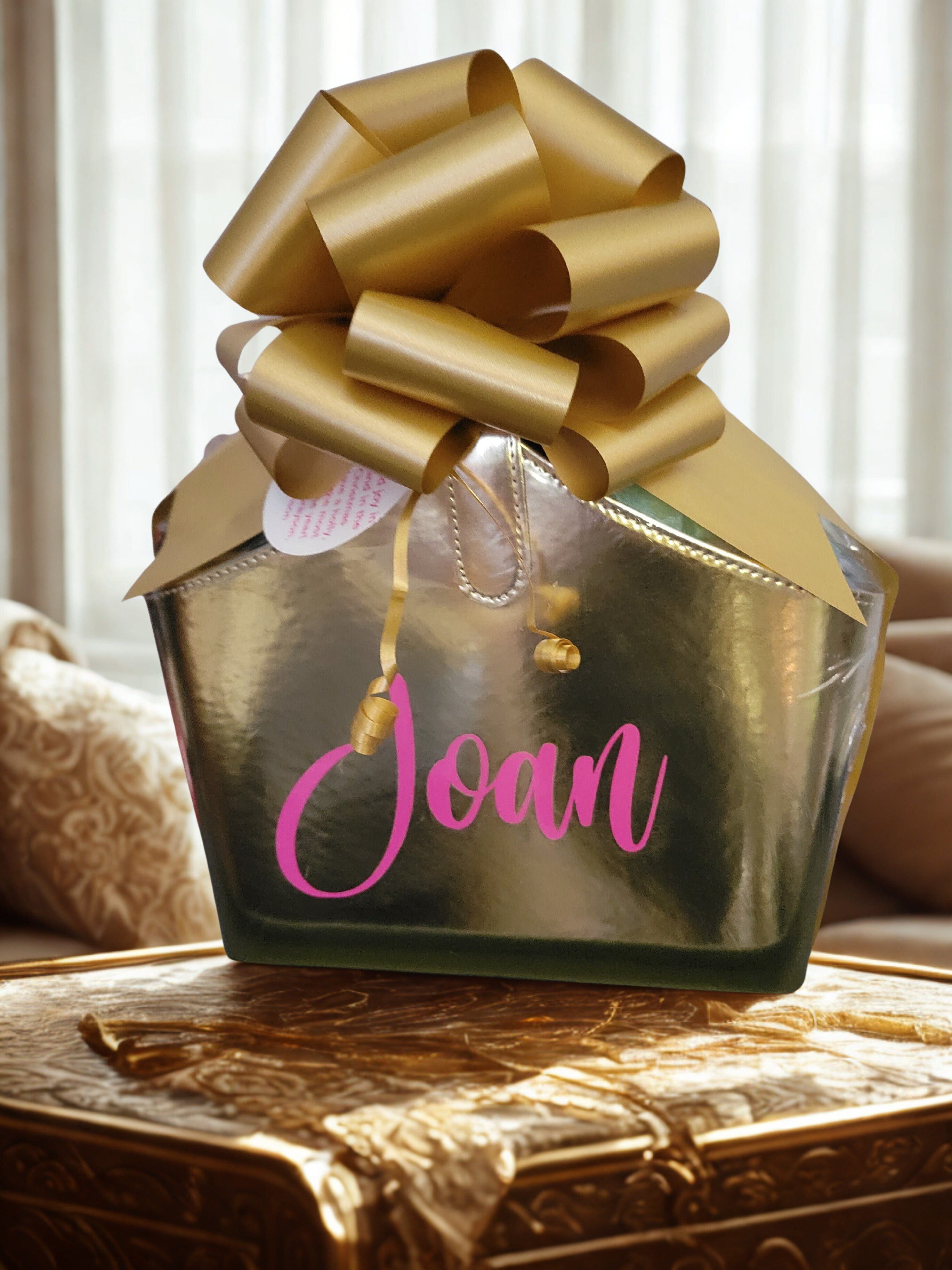 Add a personal message card inside of your gift basket! You can also optionally add a custom name on the outside of the basket.