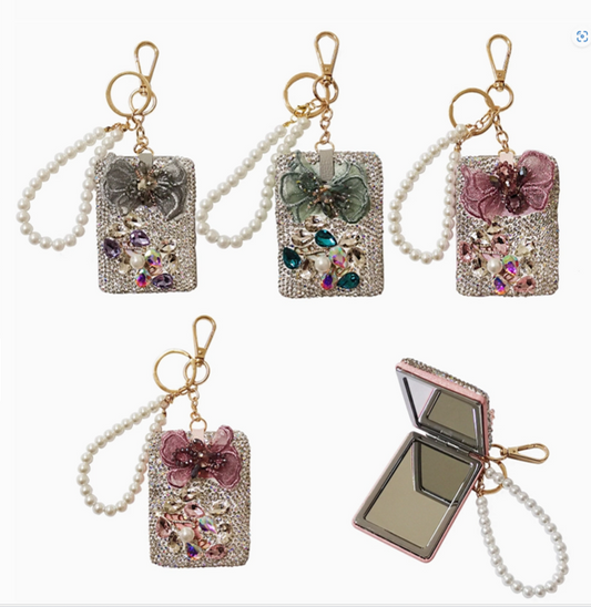 Rhinestone Compact Mirror with Pearl Strap