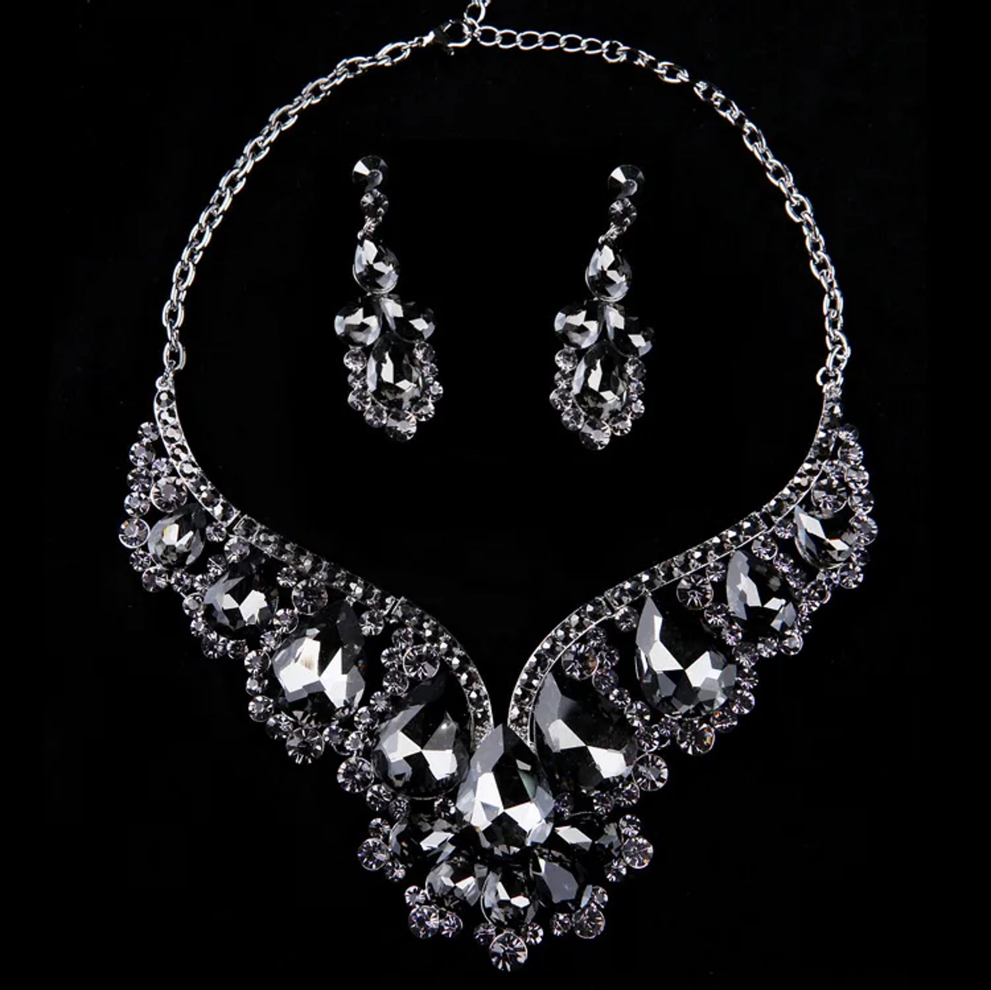 Maximalism Shiny Water Droplets Rhinestones Women's Jewelry Set _ BLACK