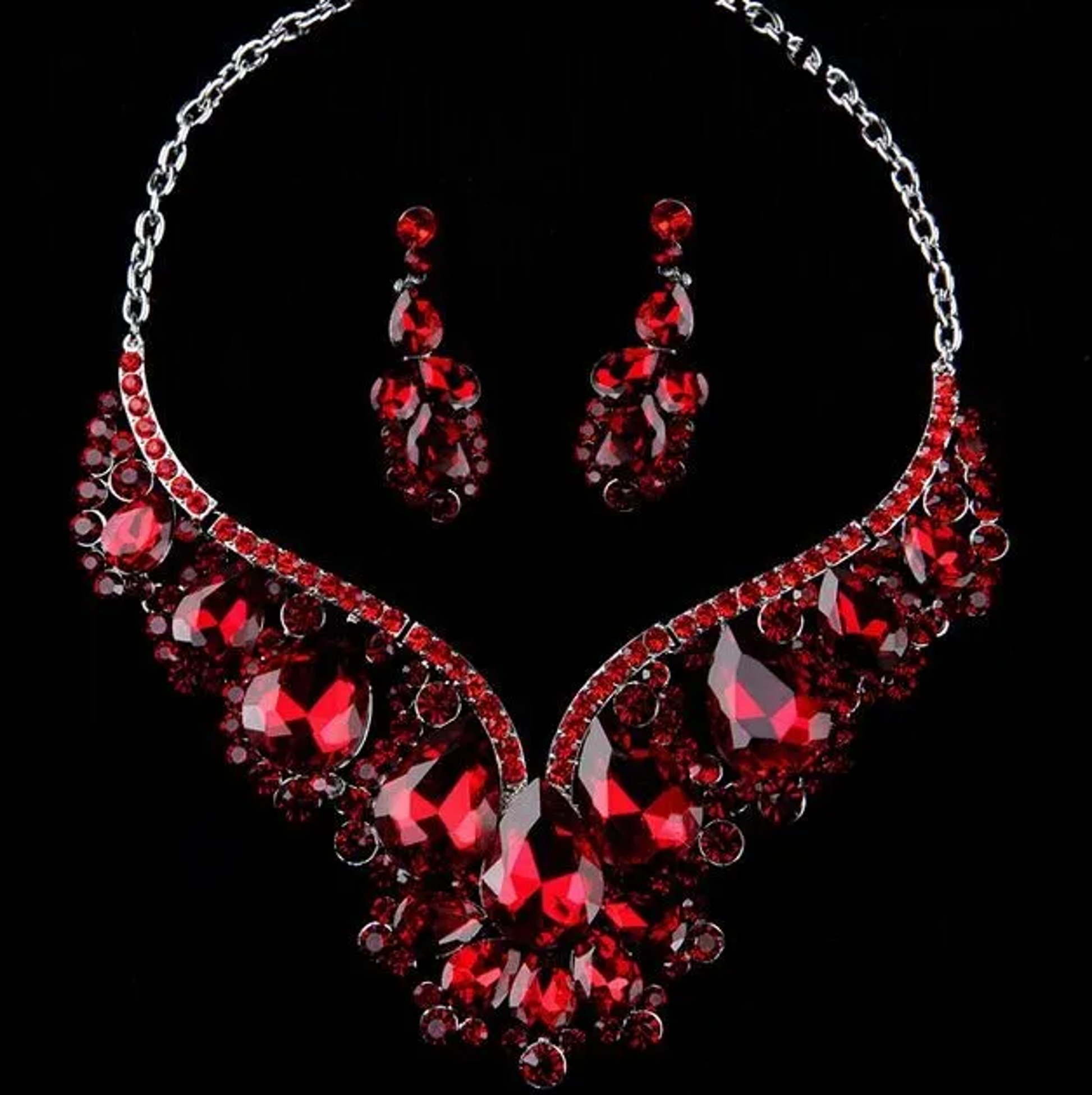 Maximalism Shiny Water Droplets Rhinestones Women's Jewelry Set _ RED